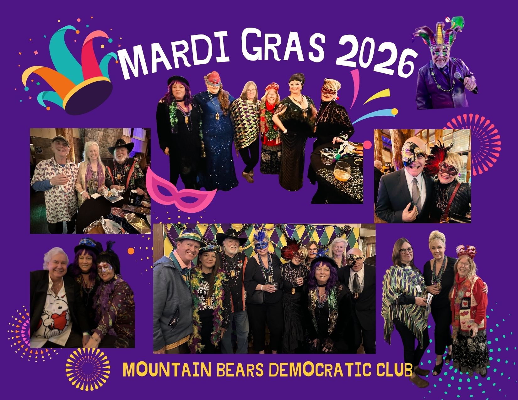 2025 was a year of uncertainty and upheaval, but The Mountain Bear Democrats rose to the occasion, came together during the chaos and forged ahead. With your support, we welcomed 12 guest speakers, heard from 4 guest candidates and were active in passing Proposition 50 through phone banking and sending out 1,000 postcards! We were visible and showed up at every No Kings protest, May Day, Hands Off and March for Liberty. Mountain Bears also supported the People's March and the National Park Protest. We advocated for our brothers and sisters at the Lake Arrowhead Pride Parade and Drag Brunch. Club members kept the pressure on Jay Obernolte at town halls and office hours. Other notable events were the Spring Potluck, Crestline Mardi Gras and Crestline's 4th of July Parade. Let's give a hand to our members who show up at the Running Springs Farmers Market! Among other achievements, we attended the MAC meeting, championed voter registration at Rim High School and participated in Neighbors Helping Neighbors. Our social media team has an impressive 1,801 online followers with content that was viewed 856,237 times while interacting with 64,361 individuals! This extraordinary organization has 108 paid members with 282 weekly newsletter recipients. Your generosity was also behind the Glen Thompson Scholarship Award. We wrapped up the year with DemsGiving, Operation Provider Food Drive, the Blue Jay Holiday Parade, Tree Contest and FireStation 91 Toy Drive. You are an incredible part of the 2025 story - keep being amazing, keep speaking out and keep showing up!