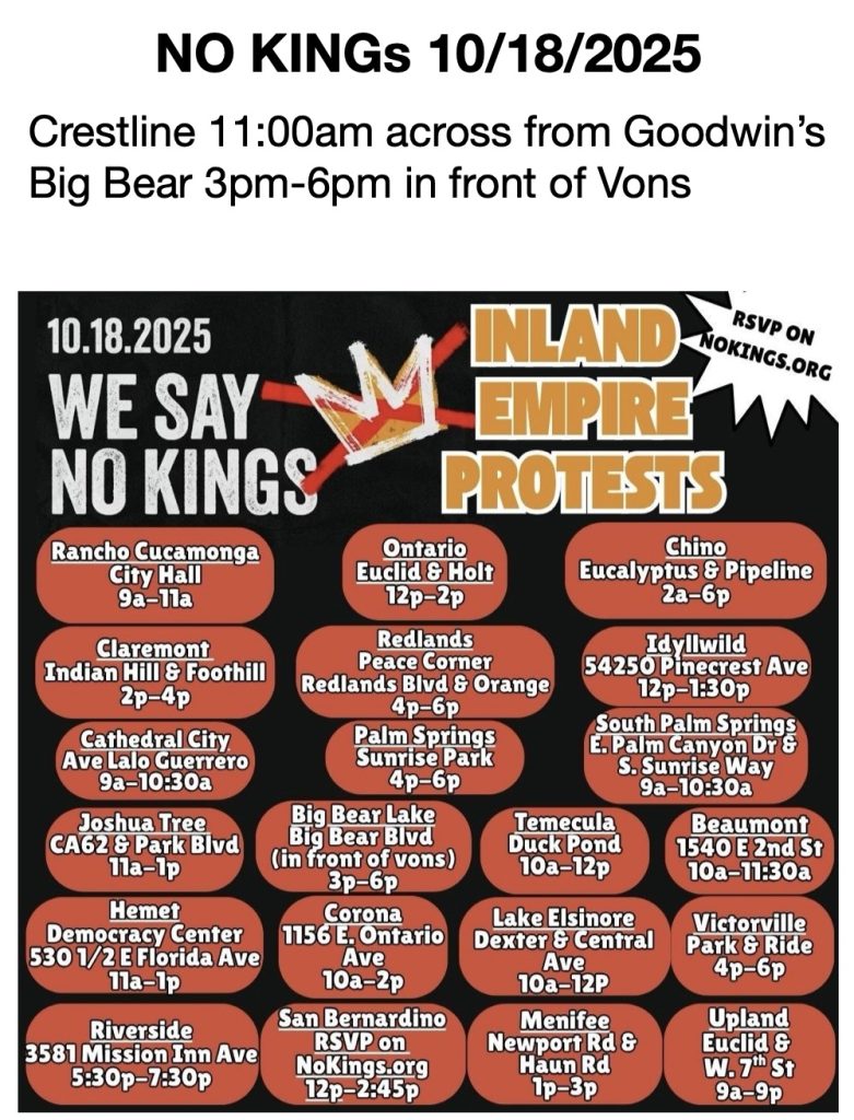 NO KINGS PROTEST-Not just to protest this parade, but to affirm something deeper: that power belongs to the people, that democracy is worth defending, that we still believe in a government of, by, and for the people. Inspired by Dr. King’s legacy, this mobilization reminds us of his vision of a just, inclusive, and equitable society.