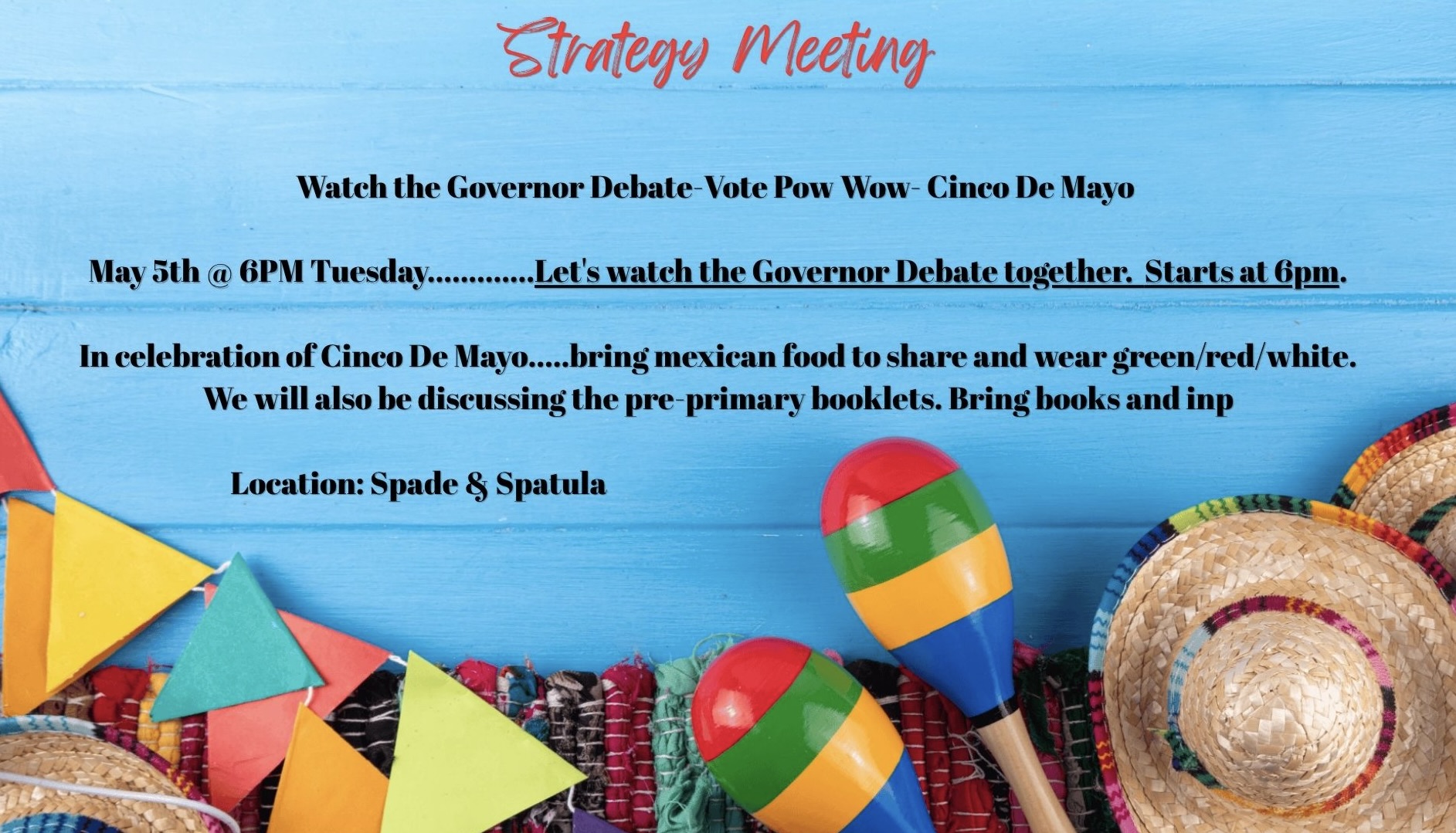 Strategy Meeting- Watch the Governor Debate-Vote Pow Wow- Cinco De Mayo